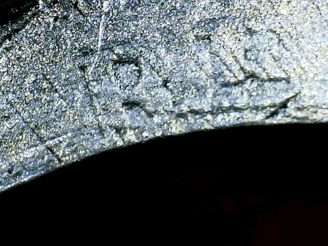 The stamp on this flute is very faint...possibly as a result of refinishing, but against that is the fact that there appear to be no repairs, that would require that level of work. Here's the stamp on the lower middle joint.